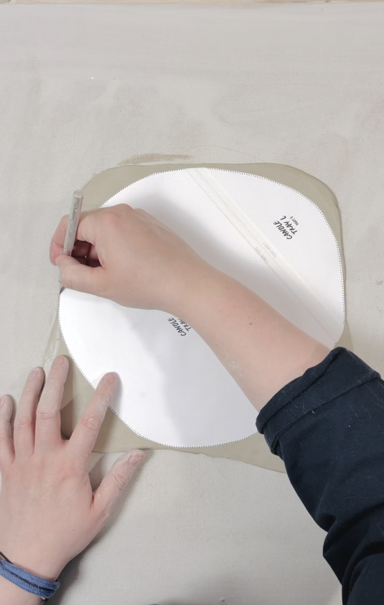 This is where paper meets clay. Place your shapes. Position them right. Cut cleanly around them. That's the move.